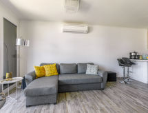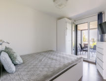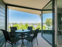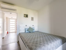 "Amarina", 2 -sobni apartman 40 m2 na 3. katu. Moderno i ukusno uređen: dnevno-spavaća soba s 1 krevetom na izvlačenje (2 osobe), kabelskom TV i klima uređajem. Izlaz na balkon. 1 soba s 1 franc. krevetom (180 cm, dužina 200 cm). Otvorena kuhinja (4 ploče za kuhanje, pećnica, perilica za suđe, toster, kuhalo za vodu). Tuš/WC, odv. WC. Balkon 10 m2. Balkonski namještaj, vrtni roštilj (prijenosni). Lijep pogled na jezero. Parking (natkrit, 1 automobil).- postrojenja