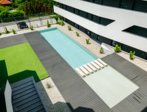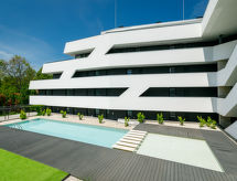 Balatonszemes 7 km od mjesta Balatonlelle: Moderni, lijepi stambeni objekt, godina izgradnje 2020. U samom mjestu, centralno mjesto, 100 m od jezera. Za zajedničko korištenje: bazen pravokutni grijani (8 x 20 m, sezonska dostupnost: 15.May. - 15.Sep.). U kući: internetcafé, wireless LAN [WLAN], dizalo, terasa za sunčanje. Trgovina živežnim namirnicama 200 m, restoran 100 m, željeznička postaja 450 m, plaža s travom 300 m. Sportska lučica 100 m. U blizini: Tihany 14 km.Interior
