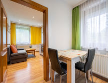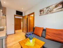 St. Kanzian: Ugodni stambeni objekt "Selina", na 2 kata. 5 apartmana u kući. Mirno mjesto u jednoj četvrti za stanovanje, 200 m od jezera. Za zajedničko korištenje: veliki vrt -, travnjak za sunčanje. Stolni tenis, ognjište, dječje igralište (tobogan, ljuljačka, pješčanik). U kući: wireless LAN [WLAN], spremište za bicikle, spremište za skije, centralno grijanje, perilica za rublje, sušilica (za zajedničko korištenje). Parking uz kuću. Supermarket 1.8 km, restoran, cafe 150 m, kupalište 400 m. Golf teren 3.5 km, tenis 600 m, minigolf 500 m, jahanje konja 11 km, pješačke staze od kuće, biciklistička staza 50 m, kabinska žičara 25 km, skijaške žičare 25 km. U blizini: Walderlebniswelt Klopein 1.8 km, OBIR-Tropfsteinhöhlen 19 km, Minimundus 30 km, Affenberg Burg Landskron 60 km, Kärntner Badehaus 600 m. Poznata skijališta u blizini: Petzen. Poznata jezera u blizini: Kleinsee, Turnersee 4 km, Drauschifffahrt am Stausee 5 km. Pješačke staze: Saualpe. Karawanken. Dodatna informacija: Ribolov dozvoljen (dozvola neophodna). Mogućnost rezerviranja dodatnih smještajnih jedinica.Interior