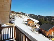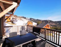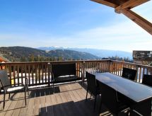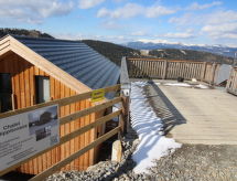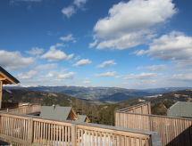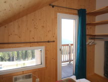 5 -sobni chalet 100 m2. Djelomično spušten strop, komforno i udobno uređen: predsoblje. Otvoreni dnevni boravak/blagovaona s stolom za blagovanje i TV-om sa sat. prijemnikom. Izlaz na terasu. Otvorena kuhinja (pećnica, perilica za suđe, 4 staklokeramičke ploče za kuhanje, kuhalo za vodu, mikrovalna pećnica, zamrzivač, el. aparat za kavu, Doze za mašinu za kavu (Dolce Gusto) uz doplatu). Tuš/WC, hidromasažnim tušem. Potkrovlje 2 bračne sobe. Izlaz na balkon. 1 bračna soba s 1 bračnim krevetom. 1 bračna soba s 2 kreveta. Tuš/WC, hidromasažnim tušem, Sauna. El. grijanje, podno grijanje. Mali balkon, terasa. Garnitura za sjedenje. Prekrasan panoramski pogled na planine i krajolik. Na raspolaganju: visoka dječja stolica, dječji krevetić do 2 godine, sušilo za kosu. Dodatna informacija: kuća za nepušače. Vatrogasni aparat.- postrojenja