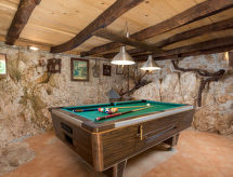 Sv. Jelena 6 km od mjesta Mošćenička Draga: Dvojna kuća "Kristijana". U zaseoku Sv. Jelena 3 km od centra mjesta Brseč, mirno, sunčano, povišeno mjesto, 7 km od mora, 7 km od plaže, u slijepoj ulici, u zelenom, prema jugu. Za samostalno korištenje: prirodno ostavljena parcela 5'000 m2 -, livada 30 m2, bazen okrugli (5 m promjer, 120 cm dubok, sezonska dostupnost: 04.May. - 14.Sep.). Vanjski tuš, stolni tenis, terasa (100 m2), roštilj. U kući: pristup internetu, biljar. Parking uz kuću na parceli. Trgovina 3 km, restoran 800 m. Sportski centar 6 km. Dodatna informacija: preporučljiv vlastiti prijevoz.Interior
