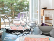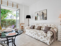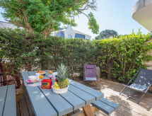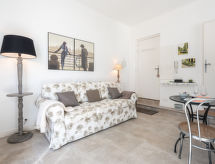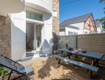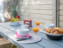 Stambeni objekt "L'Abeille d'Or", na 3 kata. U samom mjestu 400 m od centra mjesta Carnac Plage, 50 m od mora, 50 m od plaže. U kući: spremište za bicikle. Javni parking na ulici. Trgovina 400 m, supermarket 800 m, restoran 100 m, pekara 190 m, pješčana plaža "Grande Plage de Carnac" 50 m, termalno kupalište "Thalassothérapie Thalazur" 800 m. Golf teren (18 rupa) 14 km, škola jedrenja na dasci 6 km, škola jedrenja 800 m. U blizini: Les Alignements de Carnac, La Trinité sur Mer 4 km, Presqu'ile de Quiberon 15 km, Grand site Dunaire 6 km, Vannes 50 km, Lorient 60 km. Pješačke staze: Le Golfe du Morbihan.Interior