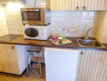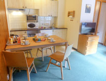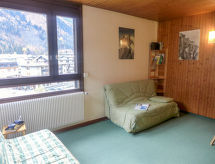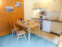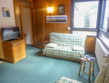 1 -sobni studio 25 m2 na 5. katu, prema jugozapadu. Dnevni boravak/blagovaona s 1 kaučem za 1 osobu (140 cm, dužina 190 cm), 1 kaučem za 2 osobe (140 cm, dužina 190 cm), TV-om. Kuhinjska niša (pećnica, 2 staklokeramičke ploče za kuhanje, kuhalo za vodu, mikrovalna pećnica, el. aparat za kavu). Kada/WC. Lijep pogled na planine. Na raspolaganju: Internet (wireless LAN [WLAN], uz doplatu). Parking br. 13 au sous sol. Dodatna informacija: protupožarni alarm.- Značajke smještaja