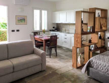 "L'Anciua", 1 -sobni studio 40 m2, u prizemlju. Potpuno renoviran godine 2020, svrsishodno i komforno uređen: Studio s 1 kaučem za 2 osobe, 1 bračnim krevetom i TV-om sa sat. prijemnikom. Izlaz na mjesto za sjedenje u vrtu. Kuhinjska niša (4 Indukcione ploče, toster, mikrovalna pećnica, el. aparat za kavu). Tuš/bidet/WC, hidromasažnom kadom. Klima uređaj, grijanje toplim zrakom. Solarna struja. Vrtna terasa. Garnitura za sjedenje, ležaljke (2). Na raspolaganju: perilica za rublje, sušilo za kosu. Internet (wireless LAN [WLAN], besplatan). Dodatna informacija: apartman za nepušače. 1 kućni ljubimac / pas dozvoljen. CITRA:010011-LT-0054- postrojenja