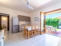 Lijepo turističko naselje "L'Avru". 900 m od centra mjesta San Teodoro, 28 km od centra mjesta Olbia, 550 m od mora, 550 m od plaže. Parking uz kuću. Supermarket 300 m, trajekt "Olbia" 28 km, pješčana plaža "La Cinta" 800 m. Golf teren (9 rupa) 6 km, jahanje konja 800 m. Dodatna informacija: Fotografija prikazuje samo tipičan primjer kuće.Interior