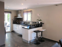 Vrlo komforna kuća "L'Yeuse". 5 km od centra mjesta Bagnols-en-Forêt, na rubu mjesta, 13 km od centra mjesta Fayence, 20 km od centra mjesta Fréjus, u jednoj četvrti za stanovanje, 23 km od mora, u zelenom. Za samostalno korištenje: parcela 1'800 m2 (ograđena) - drveće, prirodni vrt, bazen ograđen (8 x 4 m, 90- 190 cm dubok, sezonska dostupnost: 01.Jan. - 31.Dec.). Parking (za 3 automobila) na parceli. Supermarket 5 km, pješčana plaža "Saint Raphaël" 23 km. Golf teren (18 rupa) 8 km. U blizini: Golf Terres Blanches. Poznata jezera u blizini: Lac de Saint Cassien. Pješačke staze: Gorges du Blavet.Interior
