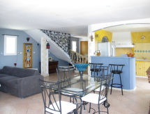 "La Belle Vue (MFT110)", 4 -sobna kuća 150 m2 na 2 etaže. Prostrano, rustikalno i ukusno uređena: dnevni boravak s otvorenim kaminom (samo za dekoraciju), stolom za blagovanje, TV-om, muzičkom linijom i DVD-om. Izlaz na terasu. Otvorena kuhinja (perilica za suđe, 4 plamena za kuhanje, toster, kuhalo za vodu, zamrzivač, el. aparat za kavu, kombinirana mikrovalna pećnica). Tuš/WC. Gornji kat: 2 sobe, svaka soba s 1 franc. krevetom (140 cm, dužina 190 cm), klima uređajem. Izlaz na balkon. 1 soba s 1 franc. krevetom (140 cm, dužina 190 cm). Kada, odv. WC, duplim umivaonikom. Bez grijanja. Velika terasa (natkrita). Garnitura za sjedenje, vrtni roštilj, ležaljke (6). Lijep panoramski pogled na krajolik i Cotignac (7 km). Na raspolaganju: perilica za rublje, glačalo. Internet (wireless LAN [WLAN], besplatan). Dodatna informacija: apartman za nepušače. Protupožarni alarm. 83083000009NU- Značajke smještaja