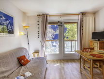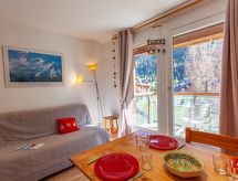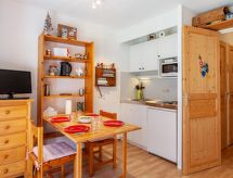 1 -sobni studio 20 m2 na 2. katu. Dnevni boravak/blagovaona s 1 kaučem za 2 osobe (140 cm, dužina 190 cm), TV-om. Izlaz na balkon. Predsoblje s 1 x 2 kreveta na kat (80 cm, dužina 190 cm). Otvorena kuhinja (2 ploče za kuhanje, toster, kuhalo za vodu, el. aparat za kavu, raclette roštilj, kombinirana mikrovalna pećnica, set za fondue (sir)). Kada, odv. WC. El. grijanje. Mali balkon 3 m2, prema jugoistoku. Balkonski namještaj. Pogled na planine. Na raspolaganju: Internet (wireless LAN [WLAN], uz doplatu). Parking. Dodatna informacija: 1 mali kućni ljubimac / pas dozvoljen. TV samo FR. Protupožarni alarm, nema dizala.- Značajke smještaja