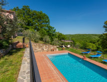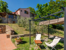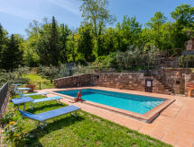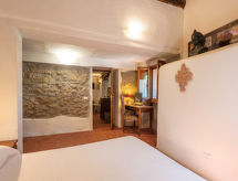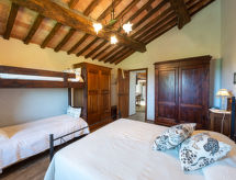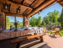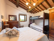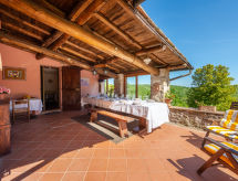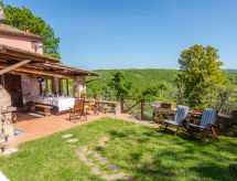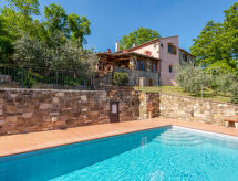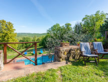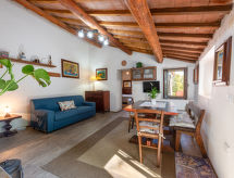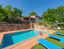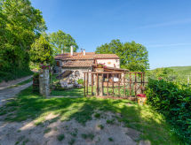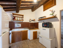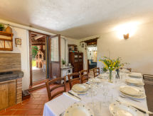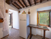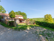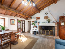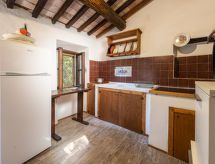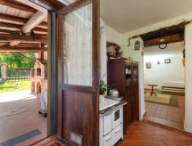 Rustikalna, komforna obiteljska kuća "La Casina", na 2 kata, nadograđena, okružena drvećem i poljima. U zaseoku Montegusciani s 4 kuća 4 km od centra mjesta Prata, 7 km od centra mjesta Boccheggiano, 17 km od centra mjesta Massa Marittima, na padini, 25 km od jezera, u zelenom, u šumi. Za samostalno korištenje: parcela 350 m2 (ograđena), terasasti vrt - drveće, livada, bazen (8 x 4 m, 140- 180 cm dubok, sezonska dostupnost: 15.May. - 30.Sep.). Vanjski tuš. Bazen održava vlasnik/vrtlar. U kući: perilica za rublje. 800 m dugački neravan prilaz autom (bijela cesta). Parking (za 3 automobila). Trgovina 4 km, trgovina živežnim namirnicama 4 km, restoran 4 km, bar 4 km, željeznička postaja "Follonica" 35 km, pješčana plaža "Follonica" 35 km. Jahanje konja 9 km, pješačke staze od kuće 10 m. U blizini: San Galgano Abbey 16 km, Giardino dei Suoni 5 km. Poznata jezera u blizini: Accesa 23 km. Pješačke staze: Mountain-bike 9 km.Interior