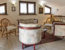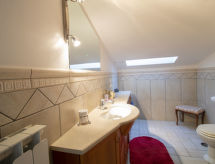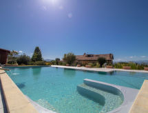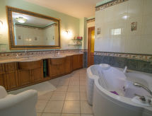 8 -sobna vila 250 m2 na 2 etaže. Svrsishodno i komforno uređena: otvoreni veliki dnevni boravak s otvorenim kaminom, TV-om i plosnatim TV ekranom. Otvorena velika blagovaona s TV-om i plosnatim TV ekranom. Izlaz u vrt. 2 bračne sobe, svaka soba s tušem/bidetom/WC-om, TV-om i plosnatim TV ekranom. 1 velika bračna soba s TV-om i plosnatim TV ekranom. Velika kuhinja (5 pećnica, perilica za suđe, zamrzivač, el. aparat za kavu). Kada/bidet/WC, odv. WC, duplim umivaonikom, hidromasažnom kadom. Gornji kat: s kosim stropom, otvoreni dnevni boravak. Izlaz na terasu. 1 soba s kosim stropom s 2 kreveta. 1 bračna soba s kosim stropom s TV-om i plosnatim TV ekranom. Izlaz na terasu. Tuš/bidet/WC. Klima uređaj. Panoramski pogled na krajolik. Na raspolaganju: perilica za rublje, mrežice protiv komaraca, sušilo za kosu. Internet (wireless LAN [WLAN]). Dodatna informacija: kuća za nepušače. U slučaju boravka manjeg broja gostiju od maksimalnog kapaciteta objekta, neće biti na raspolaganju sve spavaće sobe.- Značajke smještaja