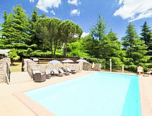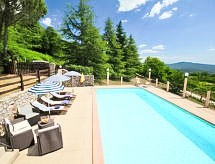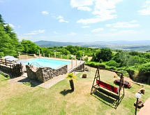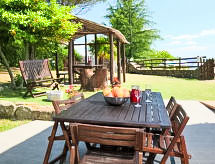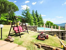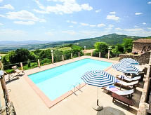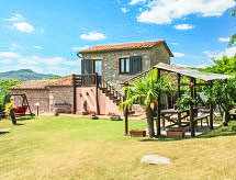 Rustikalna ladanjska kuća "La Fornace", godina izgradnje 1816. 500 m od centra mjesta Roccastrada, na brežuljku. Za samostalno korištenje: vrt 800 m2 (ograđen), bazen ograđen (5 x 10 m, 140- 140 cm dubok, sezonska dostupnost: 15.May. - 16.Oct.). Vanjski tuš, sjenica, vrtna garnitura za sjedenje, roštilj. U kući: s TV, pristup internetu, terasa za sunčanje, centralno grijanje. Čišćenje apartmana moguće (uz doplatu). 400 m dugački prilaz autom do kuće (bijela cesta). Parking uz kuću. Trgovina, supermarket, restoran, bar 500 m, autobusna postaja 700 m, pješčana plaža 40 km. Golf teren 30 km, tenis 1 km, jahanje konja 30 km. U blizini: Terme di Petriolo 10 km, Castiglione Pescaia, Punta Ala 40 km, Siena 50 km.Interior
