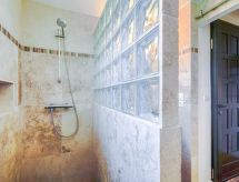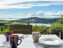 4 -sobna kuća 83 m2 na 2 etaže. Jednostavno uređena: dnevni boravak/blagovaona s 1 kaučem za 2 osobe (1 x 140 cm), TV-om. Izlaz na terasu. Otvorena kuhinja (4 ploče za kuhanje, pećnica, perilica za suđe, toster, mikrovalna pećnica, zamrzivač, el. aparat za kavu). Izlaz na terasu. Odv. WC. Gornji kat: 1 soba s 1 krevetom (110 cm). 2 sobe, svaka soba s 2 kreveta (90 cm). Tuš/WC. El. grijanje. Terasa, prema jugu. Garnitura za sjedenje, vrtni roštilj. Lijep panoramski pogled na more. Na raspolaganju: perilica za rublje. Internet (wireless LAN [WLAN], besplatan). Parking (3 automobila). Dodatna informacija: protupožarni alarm.- postrojenja