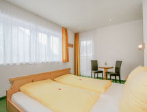 7 -sobni apartman 150 m2. Komforno i ukusno uređen: 1 soba s 2 bračna kreveta, tušem/WC-om i TV-om sa sat. prijemnikom. Mala kuhinja/dn. boravak). Donji kat: 2 bračne sobe, svaka soba s tušem/WC-om. 2 sobe, svaka soba s 1 krevetom, 1 bračnim krevetom i tušem/WC-om. Izlaz na balkon. Velika kuhinja/dn. boravak (pećnica, perilica za suđe, 4 staklokeramičke ploče za kuhanje, mikrovalna pećnica, zamrzivač, el. aparat za kavu) s stolom za blagovanje i TV-om sa sat. prijemnikom. Izlaz na balkon. Podno grijanje. Gornji kat: predsoblje. Balkon, vrtna terasa. Garnitura za sjedenje, vrtni roštilj. Vrlo lijep pogled na krajolik. Na raspolaganju: Internet (wireless LAN [WLAN]). Dodatna informacija: apartman za nepušače. Protupožarni alarm.- postrojenja