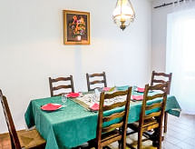 5 -sobna kuća u nizu 150 m2. Dnevni boravak/blagovaona s TV-om (plosnatim TV ekranom). Izlaz na terasu. 3 sobe, svaka soba s 1 franc. krevetom (140 cm). 1 soba s 1 krevetom. Kuhinja (pećnica, perilica za suđe, 4 staklokeramičke ploče za kuhanje, mikrovalna pećnica, zamrzivač, el. aparat za kavu). Kada/tuš, odv. WC. El. grijanje. Terasa 30 m2, prema sjeverozapadu. Garnitura za sjedenje, vrtni roštilj (prijenosni). Na raspolaganju: perilica za rublje. Dodatna informacija: najviše 1 kućni ljubimac / pas dozvoljen. Protupožarni alarm.- Značajke smještaja