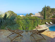 4 -sobna vila 140 m2 na 2 etaže. Dnevni boravak/blagovaona s TV-om (plosnatim TV ekranom). Izlaz na terasu. 1 soba s 1 franc. krevetom (160 cm, dužina 200 cm), kadom, duplim umivaonikom, s kutnom kadom i ventilatorom. Izlaz na terasu. 1 soba s 1 franc. krevetom (140 cm, dužina 190 cm), tušem i ventilatorom. Izlaz na terasu. Otvorena kuhinja (pećnica, perilica za suđe, 4 staklokeramičke ploče za kuhanje, toster, kuhalo za vodu, mikrovalna pećnica, zamrzivač, el. aparat za kavu). Odv. WC. Donji kat: 1 velika soba s 1 x 2 kreveta na kat (80 cm, dužina 190 cm), ventilatorom. Izlaz na bazen. Tuš/WC. El. grijanje. Terasa. Garnitura za sjedenje, ležaljke (4). Lijep pogled na more i vrt. Na raspolaganju: perilica za rublje, glačalo, sušilo za kosu. Internet (wireless LAN [WLAN], besplatan). Parking. Dodatna informacija: nije prikladno za malu djecu. TV samo FR. Protupožarni alarm. 83107000761VI- Aktivnosti u blizini