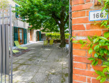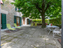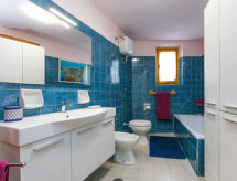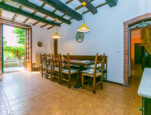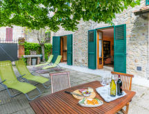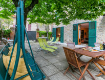 6 -sobna kuća 170 m2 na 2 etaže. Komforno i rustikalno uređena: dnevni boravak s TV-om i plosnatim TV ekranom. Izlaz na mjesto za sjedenje u vrtu. 1 soba s 1 krevetom (80 cm), 1 krevetom na izvlačenje. Izlaz na mjesto za sjedenje u vrtu. Velika kuhinja (pećnica, perilica za suđe, Plinski štednjak, 5 plamena za kuhanje, toster, kuhalo za vodu, mikrovalna pećnica, el. aparat za kavu). Izlaz na mjesto za sjedenje u vrtu. Kada/bidet/WC. Grijanje na plin. Gornji kat: dnevni boravak s TV-om sa sat. prijemnikom (plosnatim TV ekranom). 2 bračne sobe. 1 soba s 1 krevetom (130 cm). Tuš/bidet/WC. Vrtna terasa 100 m2. Garnitura za sjedenje, vrtni roštilj (prijenosni). Na raspolaganju: dječji krevetić do 2 godine. Internet (wireless LAN [WLAN], besplatan). Dodatna informacija: prikladno za obitelji. Kuća za nepušače. 1 kućni ljubimac / pas dozvoljen. Vlastiti ulaz. Na licu mjesta nema naplate dodatnih troškova, osim boravišne pristojbe.- Značajke smještaja