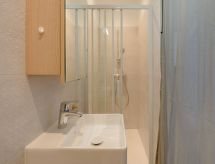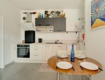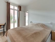 3 -sobna kuća 50 m2. Komforno i lijepo uređena: dnevni boravak/blagovaona s TV-om (plosnatim TV ekranom). Izlaz na terasu. 1 soba s 1 franc. krevetom (1 x 160 cm, dužina 200 cm), tušem/WC-om. Izlaz na terasu. 1 soba s 1 franc. krevetom (1 x 140 cm, dužina 190 cm), tušem/WC-om. Izlaz na terasu. Otvorena kuhinja (pećnica, perilica za suđe, 3 Indukcione ploče, toster, kuhalo za vodu, mikrovalna pećnica, zamrzivač, el. aparat za kavu, Doze za mašinu za kavu (Senseo) uz doplatu). El. grijanje. Velika terasa 70 m2. Garnitura za sjedenje, ležaljke (3). Na raspolaganju: perilica za rublje, sušilo za kosu. Internet (wireless LAN [WLAN], besplatan). Dodatna informacija: bez parkinga. Najviše 1 kućni ljubimac / pas dozvoljen. Protupožarni alarm. Ponuda od strane fizičke osobe u skladu s člankom 155, IV, CGI.- postrojenja