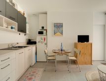 Arcachon: Mala obiteljska kuća "La Petite Dumora". 400 m od mora, 400 m od plaže. Javni parking na ulici. Trgovina 300 m, supermarket 240 m, trgovački centar 3.7 km, restoran 130 m, bar 180 m, pekara 150 m, cafe 180 m, najam bicikli 350 m, željeznička postaja "Arcachon" 800 m, pješčana plaža "Thiers" 400 m, park "Mauresque" 500 m, termalno kupalište "Thalazur" 2.2 km. Sportska lučica 2.8 km, golf teren (18 rupa) 3.2 km. U blizini: Dune du Pyla 8.7 km, Bassin Aventures 9.1 km, Observatoire Sainte Cécile 350 m, Navette Maritime pour le Cap Ferret 1.3 km, Marché Municipal 500 m, Casino 1.1 km. Poznata jezera u blizini: Lac de la Magdeleine 10.4 km, Lac de Cazaux 16.5 km. Ključeve ćete preuzeti u turističkoj agenciji Interhome u mjestu Arcachon.Interior