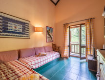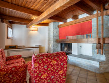 Residence "La Piazza", 1'840 m n.m., na 5 kata. U četvrti Grangesises 3 km od centra mjesta Sestriere. Za zajedničko korištenje: terasa, vrtna garnitura za sjedenje. U kući: recepcija, sala za doručak, prostorija za druženje, dizalo, spremište za skije, perilica za rublje (uz doplatu). Javna garaža. Trgovina živežnim namirnicama 20 m, supermarket 4 km, restoran, bar 20 m, vanjski bazen 3.6 km, natkriveni bazen 3.6 km. Golf teren 3.3 km, sjedežnica 2.7 km, gondola 2.7 km, skijaške staze 2.7 km, najam skijaške opreme 2.7 km, postaja ski busa 350 m, škola skijanja 2.7 km, dječje igralište 350 m. Poznata skijališta u blizini: Via Lattea 2.7 km.Interior