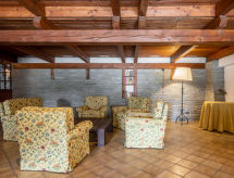Residence "La Piazza", 1'840 m n.m., na 5 kata. U četvrti Grangesises 3 km od centra mjesta Sestriere. Za zajedničko korištenje: terasa, vrtna garnitura za sjedenje. U kući: recepcija, sala za doručak, prostorija za druženje, dizalo, spremište za skije, perilica za rublje (uz doplatu). Javna garaža. Trgovina živežnim namirnicama 20 m, supermarket 4 km, restoran, bar 20 m, vanjski bazen 3.6 km, natkriveni bazen 3.6 km. Golf teren 3.3 km, sjedežnica 2.7 km, gondola 2.7 km, skijaške staze 2.7 km, najam skijaške opreme 2.7 km, postaja ski busa 350 m, škola skijanja 2.7 km, dječje igralište 350 m. Poznata skijališta u blizini: Via Lattea 2.7 km.Interior