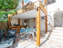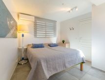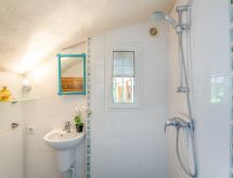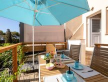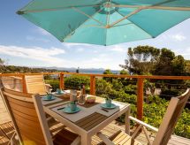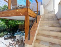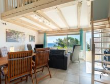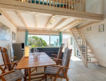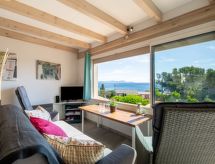 "La Pitchounette", 2 -sobna kuća u nizu 55 m2 na 3 etaže. Svrsishodno i komforno uređena: predsoblje. 1 soba s 1 bračnim krevetom (2 x 80 cm, dužina 200 cm), tušem. Odv. WC. Gornji kat: (vanjske stepenice) dnevni boravak/blagovaona s TV-om (plosnatim TV ekranom). Otvorena kuhinja (pećnica, perilica za suđe, 4 staklokeramičke ploče za kuhanje, toster, kuhalo za vodu, mikrovalna pećnica, zamrzivač, el. aparat za kavu). Izlaz na terasu. Kada, odv. WC s kutnom kadom. El. grijanje. Potkrovlje s kosim stropom, otvorena galerija s 2 kreveta (90 cm, dužina 200 cm). Klima uređaj. Terasa 15 m2, prema jugu terasa 7 m2, prema jugu. Lijep pogled na more i krajolik. Na raspolaganju: perilica za rublje. Internet (wireless LAN [WLAN], uz doplatu). Parking. Dodatna informacija: apartman za nepušače. Protupožarni alarm. Ponuda od strane fizičke osobe u skladu s člankom 155, IV, CGI. 83107 001150 L8- Značajke smještaja