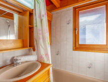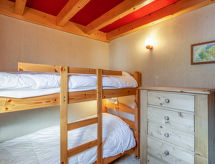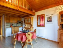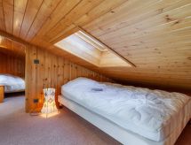 1 -sobni studio 35 m2 na 2 etaže na 3. katu. Dnevni boravak/blagovaona s TV-om. Izlaz na balkon. Kabina s 1 x 2 kreveta na kat (80 cm, dužina 190 cm). Otvorena kuhinja (4 ploče za kuhanje, pećnica, perilica za suđe, toster, kuhalo za vodu, el. aparat za kavu, Doze za mašinu za kavu (senseo) uz doplatu, raclette roštilj). Kada, odv. WC. El. grijanje, bojlerom. Gornji kat: s kosim stropom, otvorena povezna soba, visina stropa 50 - 130 cm, niska vrata visine 130 cm s 1 franc. krevetom (140 cm, dužina 190 cm). S kosim stropom povezna soba, visina stropa 50 - 130 cm s 2 kreveta (80 cm, dužina 190 cm). Balkon 9 m2, prema zapadu. Balkonski namještaj. Lijep pogled na planine i dolinu. Na raspolaganju: perilica za rublje. Internet (wireless LAN [WLAN], uz doplatu). Parking. Dodatna informacija: TV samo FR. Nema dizala.- Značajke smještaja