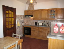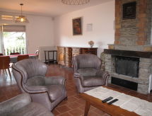 4 -sobna kuća 130 m2. Objekt pogodan za 4 odraslih + 1 dijete. Lijepo uređena: dnevni boravak/blagovaona s otvorenim kaminom (samo za dekoraciju), TV-om (plosnatim TV ekranom), klima uređajem. Izlaz na terasu. 1 soba s 2 kreveta (90 cm, dužina 190 cm). 1 soba s 1 franc. krevetom (160 cm, dužina 190 cm), klima uređajem. Izlaz na terasu. 1 mala soba s 1 kaučem za 1 osobu (90 cm, dužina 190 cm). Kuhinja (pećnica, perilica za suđe, 3 Indukcione ploče, toster, kuhalo za vodu, mikrovalna pećnica, el. aparat za kavu) s stolom za blagovanje. Izlaz na terasu. Kada, odv. WC. Grijanje na naftu. Velika terasa 60 m2. Garnitura za sjedenje, električni roštilj, ležaljke (4). Na raspolaganju: perilica za rublje, glačalo. Internet (wireless LAN [WLAN], besplatan). Dodatna informacija: kuća za nepušače. Najviše 1 kućni ljubimac / pas dozvoljen. Protupožarni alarm.- postrojenja