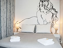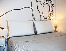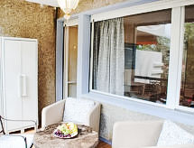 "305 Romantik", 2 -sobni apartman na 3. katu. Objekt pogodan za 2 odraslih + 1 dijete. Svijetlo, potpuno renoviran godine 2018, komforno i stilski uređen: otvoreni mali dnevni boravak/blagovaona s 1 kaučem za 1 osobu (90 cm, dužina 200 cm), stolom za blagovanje i kabelskom TV (plosnatim TV ekranom), klima uređajem. Izlaz na balkon. 1 mala bračna soba, bez prozora s 1 bračnim krevetom (1 x 160 cm, dužina 200 cm), ventilatorom. Otvorena kuhinja (4 staklokeramičke ploče za kuhanje, el. aparat za kavu, Doze za mašinu za kavu (Delonghi) uz doplatu, kombinirana mikrovalna pećnica). Kada/bidet/WC. Grijanje. Balkon, prema jugu. Balkonski namještaj. Bočni pogled na vrt. Na raspolaganju: perilica za rublje (uz doplatu). Visoka dječja stolica, dječji krevetić do 2 godine (uz doplatu). Parking uz kuću. Dodatna informacija: apartman prema dvorištu. Apartman za nepušače.- postrojenja