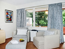 Bissone 9 km od mjesta Lugano: Lijepi, komforni stambeni objekt "Lago di Lugano", okružen drvećem i livadama. Na rubu mjesta Bissone, mirno, sunčano mjesto, odlična pozicija: u samom centru, a ipak mirno, 20 m od jezera. Za zajedničko korištenje: park, prekrasan vrt za opuštanje, bazen pravokutni grijani (sezonska dostupnost: 01.Apr. - 30.Sep.) s unutarnjim stepenicama. Tuš/WC uz bazen, bazen za djecu, vanjski tuš. U kući: prostorija za fitnes, dizalo, centralno grijanje, perilica za rublje (uz doplatu), sušilica (za zajedničko korištenje, uz doplatu). Prilaz autom do kuće. Parking uz kuću. Autobusna postaja "Linie 439" 1 m, željeznička postaja "Melide" 2.6 km, jezero za kupanje "Lago di Lugano" 5 m. Golf teren (18 rupa) 15 km. U blizini: Lugano, Foxtown Outlet, Mendrisio, Swissminiatur, Melide, Mercato Luino, Ponte Tresa, Como IT, Parco San Grato, Carona. Poznata skijališta u blizini: Nara, Valle di Blenio, Carì, Leventina, Airolo. Poznata jezera u blizini: Lago di Lugano, Lago di Como. Pješačke staze: San Salvatore, Monte Bré, Tamaro und Splash+Spa, Rivera, Monte Generoso. Dodatna informacija: prikladno za obitelji, prikladno za starije osobe. Vlasnik ne prihvaća grupe. Vlasnik ne prihvaća grupe mladih. Fotografija prikazuje samo tipičan primjer kuće. Mogućnost rezerviranja dodatnih smještajnih jedinica. Objekt ref.br. CH6816.50. Je smješten na istoj parceli. Sve kuće/apartmani su individualno opremljeni.Interior