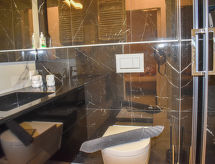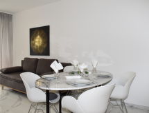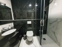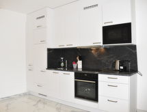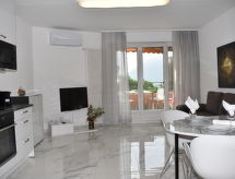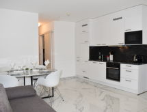 "App. 704", 2 -sobni apartman 52 m2 na 7. katu, prema jugu. Potpuno renoviran godine 2022, luksuzno i stilski uređen: otvoreni veliki dnevni boravak/blagovaona s 1 kaučem za 1 osobu (160 cm, dužina 200 cm), kabelskom TV i međunarodnim TV kanalima (plosnatim TV ekranom), klima uređajem. Izlaz na balkon. 1 mala bračna soba s 1 bračnim krevetom (2 x 90 cm, dužina 200 cm). Velika, otvorena kuhinja (pećnica, perilica za suđe, 4 staklokeramičke ploče za kuhanje, toster, kuhalo za vodu, zamrzivač, el. aparat za kavu, Doze za mašinu za kavu (Nespresso) uz doplatu, raclette roštilj) s stolom za blagovanje. Tuš/WC. Balkon 10 m2, prema jugu. Balkonski namještaj. Vrlo lijep pogled na jezero, planine i krajolik. Na raspolaganju: perilica za rublje (uz doplatu). Visoka dječja stolica, dječji krevetić do 2 godine (uz doplatu), sušilo za kosu. Internet (wireless LAN [WLAN], besplatan). Parking uz kuću. Dodatna informacija: apartman za nepušače.- postrojenja