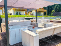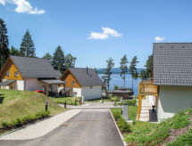 1 -sobni studio 32 m2, u prizemlju. Komforno i udobno uređen: dnevno-spavaća soba s 1 kaučem za 1 osobu i 1 bračnim krevetom. Kuhinjska niša (4 ploče za kuhanje, pećnica, perilica za suđe, kuhalo za vodu, mikrovalna pećnica, el. aparat za kavu) s stolom za blagovanje, TV-om sa sat. prijemnikom. Tuš/WC. Podno grijanje. Terasa. Garnitura za sjedenje. Djelomičan pogled na jezero. Na raspolaganju: Internet (wireless LAN [WLAN], besplatan). 1 kućni ljubimac / pas dozvoljen.- postrojenja