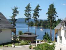 6 -sobna kuća 120 m2 na 2 etaže. Komforno i udobno uređena: dnevni boravak s 1 kaučem za 1 osobu. Kuhinjska niša (4 ploče za kuhanje, pećnica, perilica za suđe, kuhalo za vodu, mikrovalna pećnica, el. aparat za kavu) s stolom za blagovanje, TV-om sa sat. prijemnikom. Tuš/WC. Podno grijanje. Gornji kat: 2 sobe, svaka soba s 1 bračnim krevetom. 2 sobe, svaka soba s 2 kreveta. 1 soba s 2 ležaja. Tuš/WC. Balkon, terasa. Garnitura za sjedenje. Djelomičan pogled na jezero. Na raspolaganju: Internet (wireless LAN [WLAN], besplatan). 1 kućni ljubimac / pas dozvoljen.- postrojenja