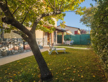 2 -sobni apartman 45 m2, u prizemlju. Renoviran godine 2006, lijepo i udobno uređen: 1 bračna soba. Kuhinja/dn. boravak (pećnica, Plinski štednjak, 4 plamena za kuhanje, toster, zamrzivač, el. aparat za kavu) s stolom za blagovanje, digitalnim TV i plosnatim TV ekranom. Izlaz u vrt, na verandu. Tuš/bidet/WC. Grijanje na plin (uz doplatu). Garnitura za sjedenje, ležaljke (2), ostava. Na raspolaganju: perilica za rublje, sušilo za kosu. Internet (wireless LAN [WLAN], besplatan). Parking (1 automobil) uz kuću. Dodatna informacija: apartman za nepušače. Vlastiti ulaz.- postrojenja