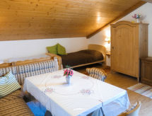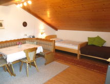 "Lassnig (ARR100)", 2 -sobni apartman 60 m2 na 2. katu. Jednostavno i udobno uređen: dnevno-spavaća soba s kosim stropom s 2 kauča za 1 osobu, stolom za blagovanje, TV-om sa sat. prijemnikom i radiom. Izlaz na balkon. 1 bračna soba s kosim stropom. Izlaz na balkon. Otvorena kuhinja (4 ploče za kuhanje, pećnica, perilica za suđe, mikrovalna pećnica, el. aparat za kavu). Tuš/WC. Grijanje. Balkon, prema jugu. Lijep pogled. Na raspolaganju: Internet (wireless LAN [WLAN], besplatan).- postrojenja