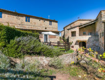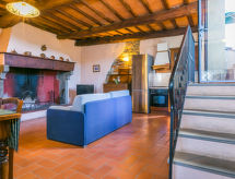 Velik, rustikalan na vinogradarskom imanju ladanjska kuća "Fattoria l'Ottavo", 400 m n.m., iz 18. stoljeća, renoviran, okružen livadama i vinogradima. 3 kuće u residenceu. 9 apartmana u residenceu. U četvrti Lucolena in Chianti 12 km od centra mjesta Greve in Chianti, 13 m od centra mjesta Figline Valdarno, izolirano, sunčano, povišeno mjesto, u zelenom. Za zajedničko korištenje: parcela 40 ha, prirodni vrt, livada, bazen ograđen (8 x 4 m, sezonska dostupnost: 01.May. - 15.Oct. bazen je otvoren u vremenu: 08:00-20:00). Vanjski tuš, terasa, vrtna garnitura za sjedenje, roštilj. Bazen održava vlasnik/vrtlar. U kući: recepcija, restoran, sala za doručak, wireless LAN [WLAN], perilica za rublje (za zajedničko korištenje). Promjena posteljine - 1 puta tjedno. Doručak može na upit (uz doplatu). 200 m dugački uski prilaz autom do parceli. Parking na parceli. Trgovina, trgovina živežnim namirnicama 700 m, supermarket 12 km, trgovački centar 13 km, restoran 1 km, bar, pekara 700 m, najam bicikli 12 km, autobusna postaja "Lucolena" 700 m, željeznička postaja "Figline Valdarno" 13 km, pješčana plaža "Calambrone" 110 km, natkriveni bazen 13 km, jezero Trasimeno 114 km. Golf teren (18 rupa) 20 km, tenis 12 km, jahanje konja 2 km, pješačke staze od kuće 100 m. U blizini: Firenze 37 km, Siena 50 km, Arezzo 54 km, San Gimignano 65 km. Dodatna informacija: preporučljiv vlastiti prijevoz. Radno vrijeme recepcije 10:00-17:00 sati. Prikladno za obitelji, oprema za bebe (uklj.). Prikladno za evente. Prodaja domaćih poljoprivrednih proizvoda. Dodatna informacija: vlasnik živi na istoj parceli. Sve kuće/apartmani su individualno opremljeni.Interior