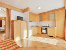 "Lazzer (CPO340)", 2 -sobni apartman 36 m2, u povišenom prizemlju. Udobno i s puno drva uređen: 1 bračna soba s TV-om sa sat. prijemnikom. Kuhinja/dn. boravak (pećnica, perilica za suđe, 4 plamena za kuhanje, kuhalo za vodu, el. aparat za kavu) s 1 kaučem za 2 osobe, kutom za blagovanje i TV-om sa sat. prijemnikom. Tuš/bidet/WC. Grijanje. Na raspolaganju: sef. Internet (wireless LAN [WLAN], uz doplatu). Dodatna informacija: apartman za nepušače. Vlastiti ulaz. CIPAT: 022113-AT-061039- postrojenja