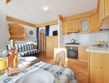 "Lazzer (CPO341)", 2 -sobni apartman 36 m2, u povišenom prizemlju. Udobno i s puno drva uređen: 1 bračna soba. Kuhinja/dn. boravak (pećnica, perilica za suđe, 4 plamena za kuhanje, kuhalo za vodu, el. aparat za kavu) s 1 kaučem za 2 osobe, kutom za blagovanje i TV-om sa sat. prijemnikom. Tuš/bidet/WC. Grijanje. Ostava. Na raspolaganju: sef. Internet (wireless LAN [WLAN], uz doplatu). Dodatna informacija: apartman za nepušače. CIPAT: 022113-AT-061038- postrojenja