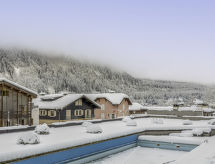 2 -sobni apartman 54 m2 na 1. katu. Veliki dnevni boravak/blagovaona s 1 kaučem za 2 osobe (140 cm, dužina 190 cm), TV-om (plosnatim TV ekranom). Izlaz na balkon. 1 velika soba s 1 franc. krevetom (140 cm, dužina 190 cm). Kuhinja (pećnica, perilica za suđe, 4 staklokeramičke ploče za kuhanje, kuhalo za vodu, el. aparat za kavu, Doze za mašinu za kavu (Nespresso) uz doplatu). Kada, odv. WC. Grijanje. Balkon, prema jugu. Vrlo lijep pogled na planine i bazen. Na raspolaganju: perilica za rublje. Internet (wireless LAN [WLAN], uz doplatu). Parking. Dodatna informacija: apartman za nepušače. TV samo FR. Protupožarni alarm.- Značajke smještaja