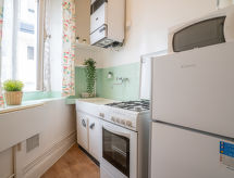 Lijepi stambeni objekt "Le Britannia". 800 m od centra mjesta Biarritz, 580 m od mora, 580 m od plaže. Za zajedničko korištenje: vrt. U kući: prostorija za sušenje rublja. Trgovina živežnim namirnicama, supermarket 100 m, restoran 120 m, pekara 140 m, cafe 120 m, internet cafe 420 m, najam bicikli 470 m, pješice 10 minuta do centra, autobusna postaja "Thermes" 70 m, željeznička postaja 3 km, pješčana plaža "La Grande Plage", natkriveni bazen 580 m, termalno kupalište "Thalmar" 3 km. Golf teren 760 m, škola jedrenja na dasci 1.5 km, jahanje konja 3 km. U blizini: Musée de la Mer 1.4 km, Musée du Chocolat 1.8 km, San Sebastian 50 km, Musée Guggenheim Bilbao 148 km, La Rhune 25 km. Poznata jezera u blizini: Lac de Sames 46 km, Lac Marion 3 km. Dodatna informacija: nema dizala. Animacija u sezoni. Ključeve ćete preuzeti u turističkoj agenciji Interhome.Interior