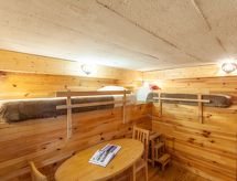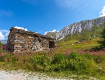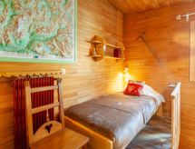 5 -sobna polovica dvojne kuće 75 m2, u prizemlju. Svrsishodno i lijepo uređena: dnevni boravak/blagovaona s TV-om (plosnatim TV ekranom). Izlaz na balkon, prema jugozapadu. Otvorena kuhinja (perilica za suđe, 3 staklokeramičke ploče za kuhanje, toster, kuhalo za vodu, zamrzivač, el. aparat za kavu, raclette roštilj, kombinirana mikrovalna pećnica, set za fondue (sir)). Donji kat: prolazna soba s 3 kreveta (90 cm, dužina 200 cm). 1 soba s 1 franc. krevetom (140 cm, dužina 190 cm). Tuš/WC. Gornji kat: povezna soba s 1 krevetom (90 cm, dužina 190 cm), 1 x 2 kreveta na kat (90 cm, dužina 190 cm). 1 soba s 1 franc. krevetom (140 cm, dužina 190 cm). Kada/WC. Grijanje na naftu. Ležaljke (2). Vrlo lijep panoramski pogled na planine, skijašku stazu i golf igralište. Na raspolaganju: Internet (wireless LAN [WLAN], besplatan). Parking (1 automobil). Dodatna informacija: kuća za nepušače. Vlastiti ulaz, protupožarni alarm.- Značajke smještaja