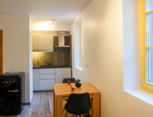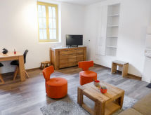 1 -sobni studio 27 m2, u prizemlju, prema sjeveru. Moderno uređen: dnevni boravak/blagovaona s 1 kaučem za 2 osobe i TV-om. Kuhinjska niša (perilica za suđe, 2 staklokeramičke ploče za kuhanje, kuhalo za vodu, mikrovalna pećnica, el. aparat za kavu). Tuš/WC. El. grijanje. Na raspolaganju: perilica za rublje. Internet (wireless LAN [WLAN], besplatan). Parking. Dodatna informacija: apartman prema cesti. Kuća za nepušače. TV samo FR. Protupožarni alarm.- postrojenja