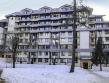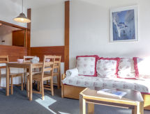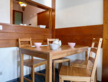 2 -sobni apartman 28 m2 na 3. katu. Dnevni boravak/blagovaona s 2 kreveta (80 cm, dužina 190 cm), TV-om. 1 soba s 1 bračnim krevetom (140 cm, dužina 190 cm). Kuhinjska niša (perilica za suđe, 4 staklokeramičke ploče za kuhanje, kuhalo za vodu, el. aparat za kavu, kombinirana mikrovalna pećnica). Kada, odv. WC. El. grijanje. Mali balkon, prema jugozapadu. Pogled na planine. Na raspolaganju: Internet (wireless LAN [WLAN], uz doplatu). Dodatna informacija: apartman prema cesti. Bez parkinga. TV samo FR. Protupožarni alarm.- Značajke smještaja