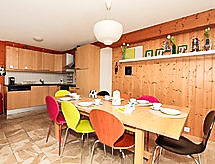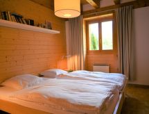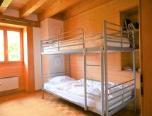 "Le Chamois Vert", 5 -sobni chalet 110 m2 na 3 etaže. Komforno i lijepo uređen: predsoblje. Dnevni boravak/blagovaona s kabelskom TV i radiom. Izlaz na terasu. Velika, otvorena kuhinja (pećnica, perilica za suđe, 4 staklokeramičke ploče za kuhanje, el. aparat za kavu, Doze za mašinu za kavu (Nespresso), raclette roštilj, set za fondue (sir)) s stolom za blagovanje. Odv. WC. Gornji kat: 1 soba s 2 kreveta (90 cm, dužina 200 cm). 1 soba s 1 x 2 kreveta na kat (90 cm, dužina 200 cm). Tuš/WC. 2. Gornji kat: 1 soba s 2 kreveta (90 cm, dužina 200 cm). 1 soba s 1 x 2 kreveta na kat (90 cm, dužina 200 cm). Kada/WC. Terasa. Vrtni roštilj. Lijep pogled na planine. Na raspolaganju: perilica za rublje, visoka dječja stolica, sušilo za kosu. Internet (wireless LAN [WLAN], besplatan). Parking (2 automobila). Dodatna informacija: apartman za nepušače.- Značajke smještaja
