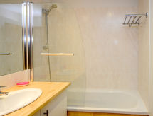 "Le Clos des Rives (SCO100)", 2 -sobni apartman 41 do 49 m2. Objekt pogodan za 2 odraslih. Lijepo i udobno uređen: dnevno-spavaća soba s 1 kaučem za 2 osobe (140 cm, dužina 190 cm), stolom za blagovanje i TV-om sa sat. prijemnikom (plosnatim TV ekranom), muzičkom linijom i DVD-om. Izlaz na balkon, na terasu. 1 soba s 1 franc. krevetom (140 cm, dužina 190 cm), kadom. Otvorena kuhinja (pećnica, perilica za suđe, 4 staklokeramičke ploče za kuhanje, toster, kuhalo za vodu, mikrovalna pećnica, zamrzivač, el. aparat za kavu). Odv. WC. El. grijanje. Balkon ili terasa. Balkonski namještaj. Na raspolaganju: perilica za rublje, sef, glačalo, visoka dječja stolica, dječji krevetić (uz doplatu). Internet (wireless LAN [WLAN], besplatan). Dodatna informacija: apartman za nepušače. Protupožarni alarm.- postrojenja