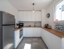 3 -sobni apartman 65 m2 na 1. katu. Dnevni boravak/blagovaona s TV-om (plosnatim TV ekranom). Izlaz na terasu. 1 soba s 1 franc. krevetom (1 x 140 cm, dužina 190 cm). 1 soba s 1 krevetom (90 cm, dužina 190 cm), 1 franc. krevetom (1 x 140 cm, dužina 190 cm). Kuhinja (pećnica, perilica za suđe, 4 Indukcione ploče, kuhalo za vodu, el. aparat za kavu, kombinirana mikrovalna pećnica). Tuš, odv. WC. Velika terasa 20 m2. Garnitura za sjedenje. Na raspolaganju: perilica za rublje, sušilica. Internet (wireless LAN [WLAN], besplatan). Parking br. 15. Dodatna informacija: protupožarni alarm. Ponuda od strane fizičke osobe u skladu s člankom 155, IV, CGI.- postrojenja