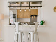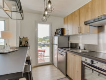 Bidart: Residence "Le clos Xapella". 1.8 km od mora, 1.8 km od plaže. Za zajedničko korištenje: vrt, bazen (sezonska dostupnost: 15.Jun. - 15.Sep.). Parking. Trgovački centar 3.5 km, restoran 2 km, bar 2 km, pekara 2 km, cafe 2 km, pješice 7 minuta do centra, željeznička postaja "Guethary" 3 km, pješčana plaža "Uhabia" 1.8 km, termalno kupalište "Hélianthal" 7 km. Golf teren (18 rupa) 9 km, škola jedrenja na dasci 1.8 km, tenis 800 m. U blizini: Bidaparc 1.6 km, Aquarium de Biarritz 7 km. Pješačke staze: La Rhune 25 km. Dodatna informacija: ključeve ćete preuzeti u turističkoj agenciji Interhome u mjestu Bidart. Mogućnost rezerviranja dodatnih smještajnih jedinica.Interior
