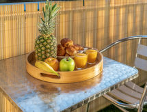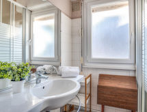 2 -sobni apartman 50 m2 na 1. katu. Objekt pogodan za 2 odraslih + 1 dijete. Jednostavno i svrsishodno uređen: dnevni boravak/blagovaona s 1 krevetom (90 cm, dužina 190 cm), TV-om (plosnatim TV ekranom). Izlaz na balkon. 1 soba s 2 kreveta (80 cm, dužina 200 cm). Kuhinja (1 ploča za kuhanje, mini pećnica, pećnica, mikrovalna pećnica, el. aparat za kavu). Tuš, odv. WC. Balkonski namještaj. Djelomičan pogled u daljini na more. Na raspolaganju: Internet (wireless LAN [WLAN], uz doplatu). Dodatna informacija: protupožarni alarm.- postrojenja