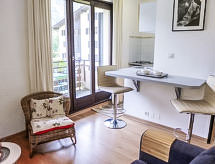 1 -sobni apartman 21 m2 na 2. katu. Dnevni boravak/blagovaona s 1 bračnim krevetom i TV-om. Izlaz na balkon. Otvorena kuhinja (pećnica, 2 staklokeramičke ploče za kuhanje, kuhalo za vodu, el. aparat za kavu). Tuš, odv. WC. Grijanje na plin. Prema jugu i prema istoku. Lijep pogled na planine. Na raspolaganju: Internet (wireless LAN [WLAN], uz doplatu). Parking br. HS2 au sous sol. Dodatna informacija: apartman za nepušače. TV samo FR. Protupožarni alarm.- Značajke smještaja