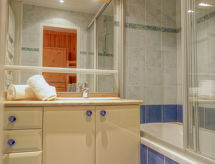 2 -sobni apartman 42 m2 na 4. katu. Komforno i lijepo uređen: dnevni boravak/blagovaona s 1 kaučem za 2 osobe (140 cm), TV-om. 1 soba s 1 franc. krevetom (160 cm). Predsoblje s 1 x 2 kreveta na kat (80 cm). Kuhinjska niša (pećnica, perilica za suđe, 4 staklokeramičke ploče za kuhanje). Kada, odv. WC. Balkon, prema jugu. Vrlo lijep pogled na planine. Na raspolaganju: Internet (wireless LAN [WLAN], uz doplatu). Dodatna informacija: apartman za nepušače. Protupožarni alarm.- Značajke smještaja