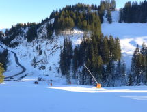 "Le Cyclamen", 5 -sobni chalet. Komforno i udobno uređen: dnevni boravak/blagovaona s otvorenim kaminom i TV-om. Izlaz na balkon. 1 soba s 2 kreveta (90 cm, dužina 200 cm). Mala, otvorena kuhinja (pećnica, perilica za suđe, 4 staklokeramičke ploče za kuhanje, toster, kuhalo za vodu, zamrzivač, el. aparat za kavu, raclette roštilj, set za fondue (chinoise, sir)). Kada, odv. WC. Donji kat: tuš, odv. WC, Sauna. Gornji kat: 1 soba s 1 bračnim krevetom (160 cm, dužina 200 cm). 1 soba s 1 krevetom (80 cm, dužina 160 cm), 1 bračnim krevetom (160 cm, dužina 200 cm). Balkon, terasa. Vrtni roštilj (prijenosni). Lijep pogled na planine i skijašku stazu. Na raspolaganju: glačalo, dječji krevetić do 2 godine, sušilo za kosu. Internet (wireless LAN [WLAN], besplatan). Dodatna informacija: apartman za nepušače.- Značajke smještaja
